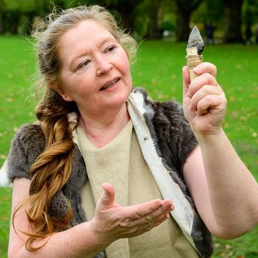 She is a freelance workshop provider and living historian in public engagement, travelling around the UK covering from the Stone Age to the Vikings and the Maya world.