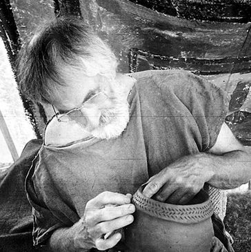 His pottery ranges from authentic replicas, made from clay he has dug, shaped by hand and fired in open an bonfire to more contemporary wares that are inspired by the ancient pots but