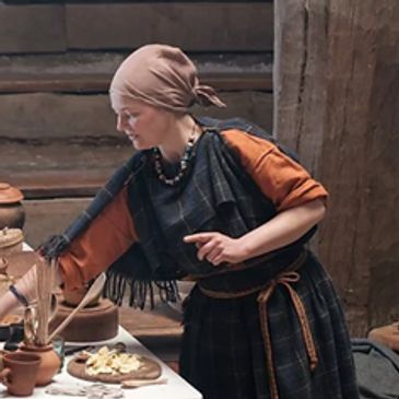 Caroline demonstrates and gives lectures on Iron Age cooking and paints and pigments on television, at museums and a range of historic centres around the UK and Northern Europe.